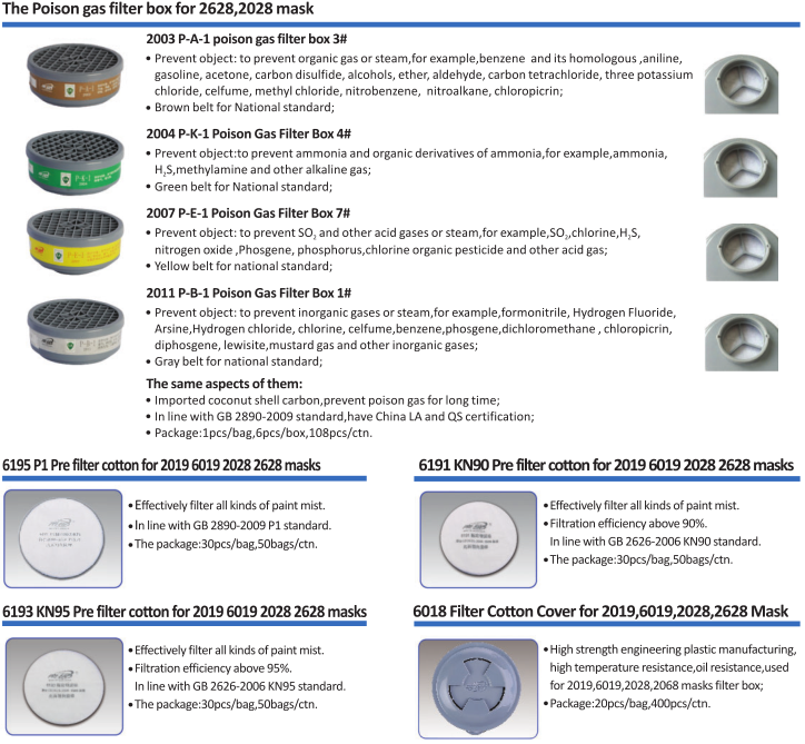 ● clasp model,the model can be connected with a filter box or a filter cotton socket to be used as a protective poison gas mask or a protective dust mask.